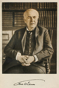 Thomas Alva Edison (11 februari 1847 – 18 oktober 1931) was een Amerikaanse uitvinder en zakenman . Hij ontwikkelde veel apparaten die het leven over de hele wereld enorm hebben beïnvloed, waaronder de fonograaf , de filmcamera en een duurzame, praktische elektrische gloeilamp . Door een krantenverslaggever “The Wizard of Menlo Park” genoemd, was hij een van de eerste uitvinders die de principes van massaproductie en grootschalig teamwork toepaste op het uitvindingsproces, en daarom wordt hij vaak gecrediteerd voor de creatie van het eerste industriële onderzoekslaboratorium . [1]
