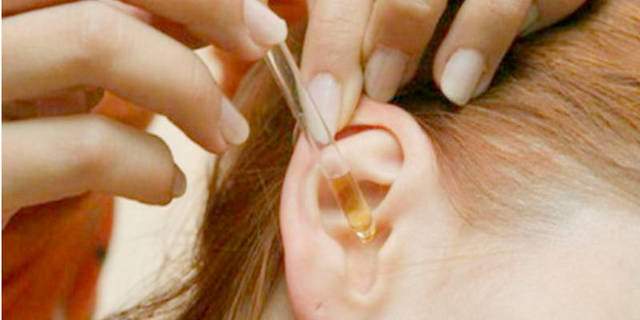 - met een pipet worden 2 tot 4 druppels van de oplossing in het oor gedruppeld;
